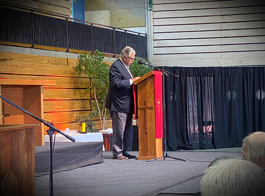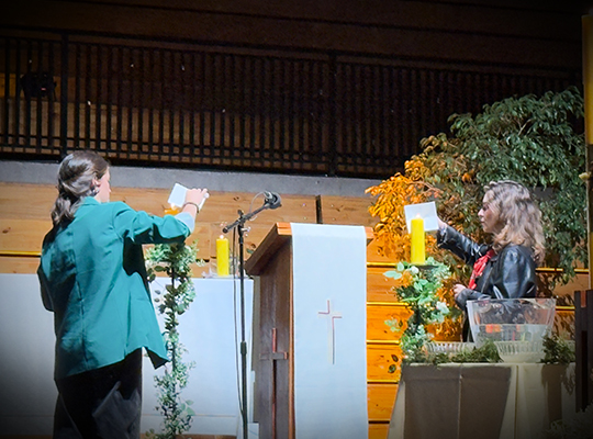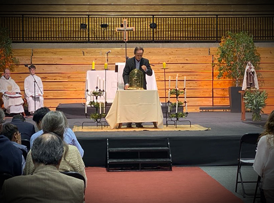 Finalmente, en la Liturgia Eucarística: “La Eucaristía es el presente del Resucitado que sigue dándose en los signos de la entrega, y es así nuestra vida”.
