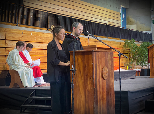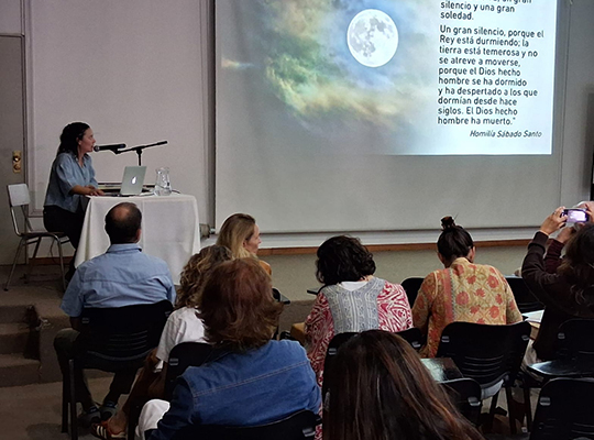 El Sábado Santo, Javiera Lubascher reflexionó sobre la Liturgia de la Vigilia Pascual: “La Liturgia es la prolongación de este quedarse del Señor, será nuestra maestra: despierta y enseña”. Así fue iluminando la Solemne Vigilia Pascual. La Liturgia de la Luz, Cirio pascual: “es la Cruz inundada de luz, llena de luz. Es el crucificado-resucitado. En el Pregón pascual, canto de gran anuncio: Exulten los coros de los ángeles, exulten los servidores de Dios, y por la victoria de Rey tan poderoso que las trompetas anuncien la salvación”.