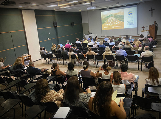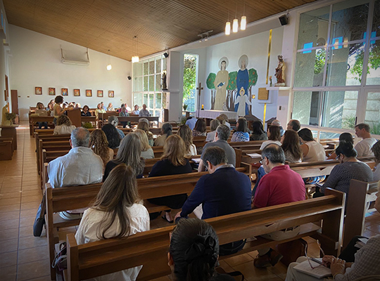 Finalmente, en la oración de Hora Intermedia, Jonathan Perry, Responsable, agradeció a cada uno por su labor, clave de tutoría y relación personal uno a uno, a sentirse renovados en su rol y con más claridad cómo llevar sus comunidades. “El Grupo de Lectio es el lugar privilegiado para la escucha, y la Regla de San Benito regala cómo armar el ambiente para la escucha de la Palabra”. No hay comunidad sin abad y es un gran servicio ser encargado de un Grupo de Lectio, sentirse parte de algo más grande con un equipo consolidado detrás, con la misión de acoger, y compartir la propia experiencia. Comentó que venía llegando del Inicio de Año Pastoral de la Iglesia de Santiago, donde llamaron a renovar el impulso misionero, y los Grupos de Lectio son espacio para escuchar la Palabra con un abad/tutor. Realizó un gran llamado “a la Misión, a animar a nuestras comunidades ser misioneros, y misioneros uno a uno como laicos”.